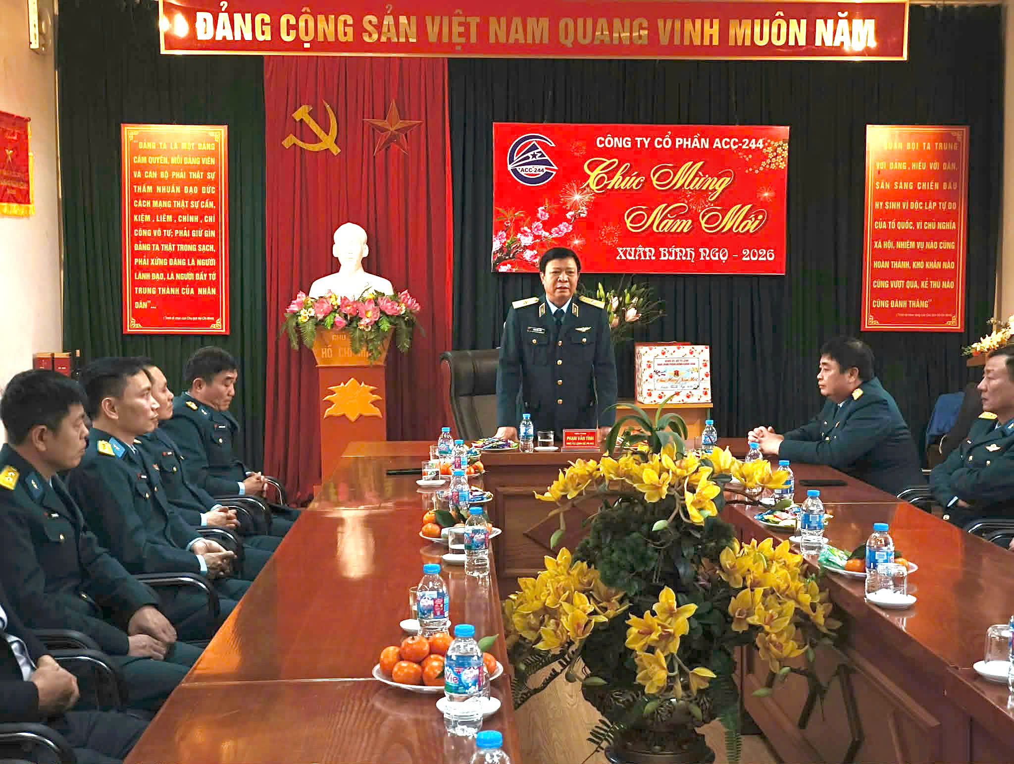 Thay mặt Đảng ủy, Bộ Tư lệnh Quân chủng, Thiếu tướng Phạm Văn Tính ghi nhận, biểu dương những kết quả mà Công ty cổ phần ACC-244 đã đạt được trong năm 2025. Đồng chí Phó Tư lệnh Quân chủng yêu cầu trong thời gian tới Công ty tập trung phát huy sức mạnh tổng hợp, chú trọng xây dựng nguồn nhân lực chất lượng cao và đầu tư công nghệ mới, hiện đại; không ngừng nâng cao hiệu quả sản xuất kinh doanh, bảo đảm đúng pháp luật; nâng cao đời sống và thực hiện tốt các chế độ chính sách đối với người lao động, nghĩa vụ đối với Nhà nước.